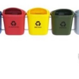 Os cestos e a tampa são injetados em plástico polietileno de alta densidade ou em polipropileno com proteção UV e a estrutura metálica é confeccionada em aço carbono 1020 galvanizado.